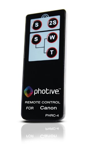 The Photive RC-4 Wireless Remote for Canon Digital SLRs is a must-have tiny infrared wireless remote, and should be a part of any serious photographer's tool box. Point the RC-4 Wireless Remote toward the front of the camera (line of sight) and take full control the shutter. Eliminate vibrations caused by touching the shutter release button (for lengthy exposures or macro photography, for example). You can and even put yourself in the picture without having to make that silly 10 second dash. Wireless control allows users to step away from the camera when shooting. The RC-4 is only 2.5" (63.5 mm) tall and can fit easily into your pocket.